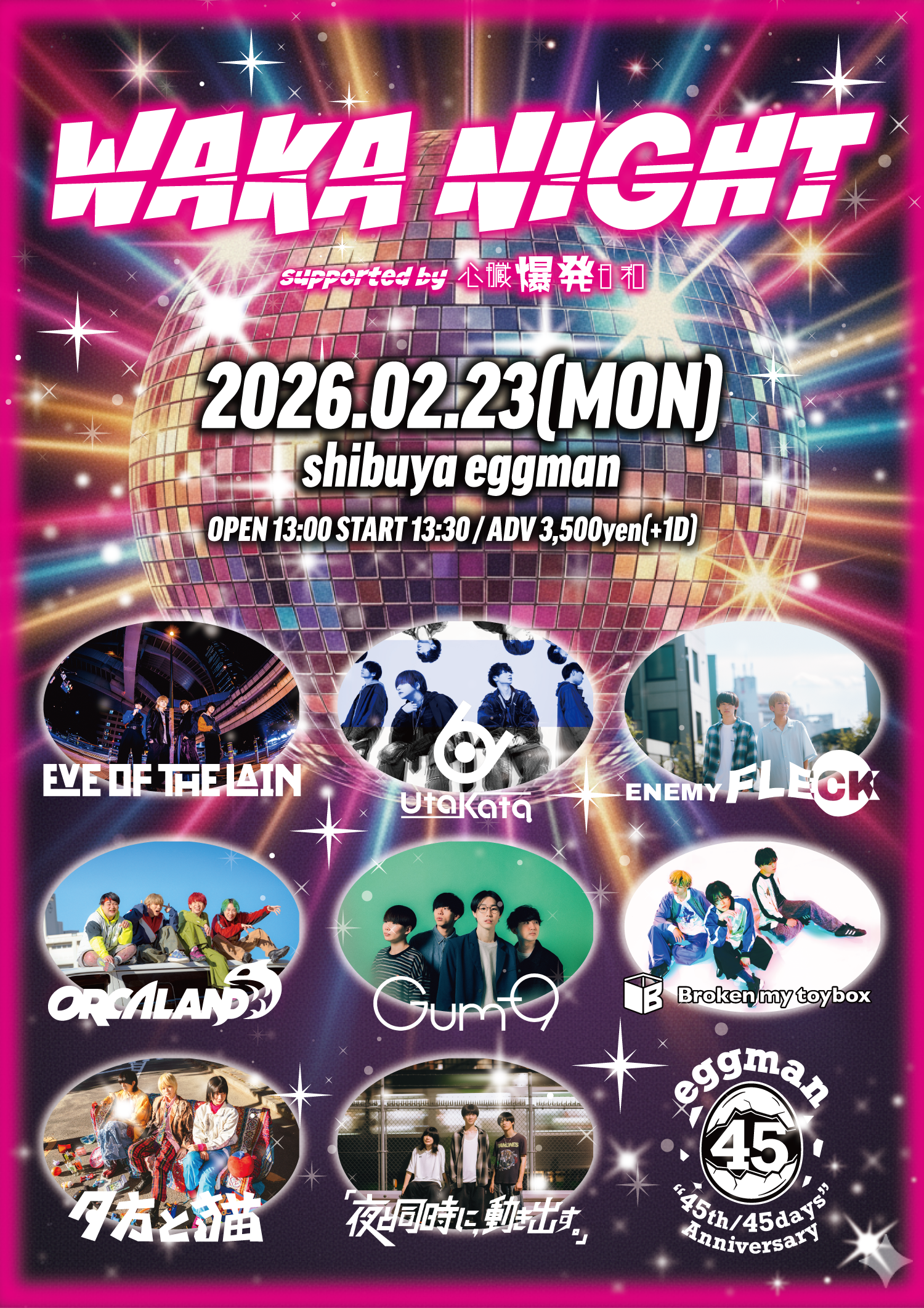 2/23(月・祝) 渋谷 WAKA NIGHT Supported by 心臓爆発日和 [eggman “45th/45days” Anniversary]