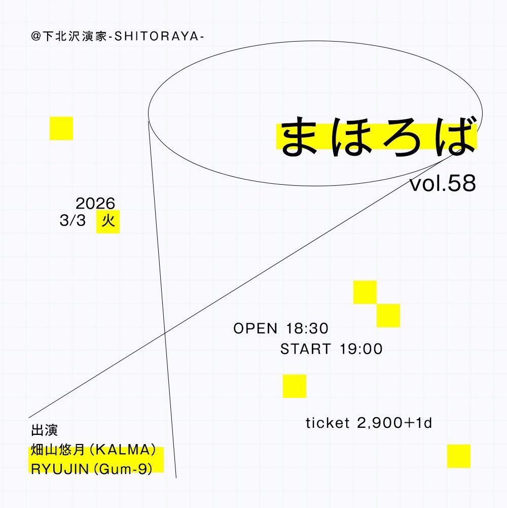 2026.03.03(火)[弾き語り公演] まほろばvol.58■場所: 下北沢演家■OP/ST: 18:30 / 19:00■ADV/DOOR: ¥2900 / – +1D🎟️https://tiget.n… 続きを読む 3/3(火) 下北沢 [弾き語り公演]