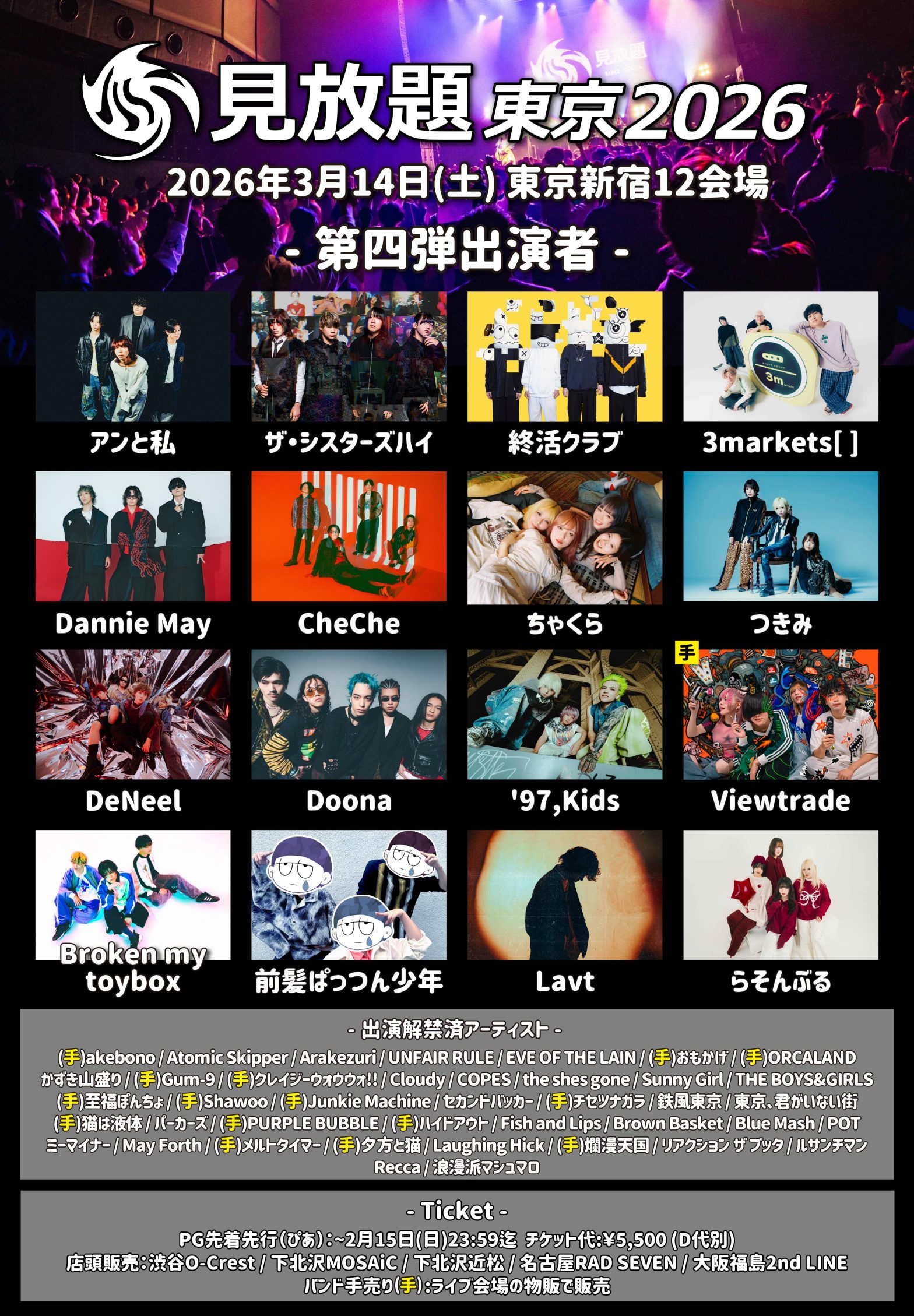 2026.03.14(土)見放題東京2026■場所: 新宿 12会場■OP/ST: TBA / TBA■料金: ¥5500 +1D🎟️https://w.pia.jp/t/mihoudai-tokyo-26/